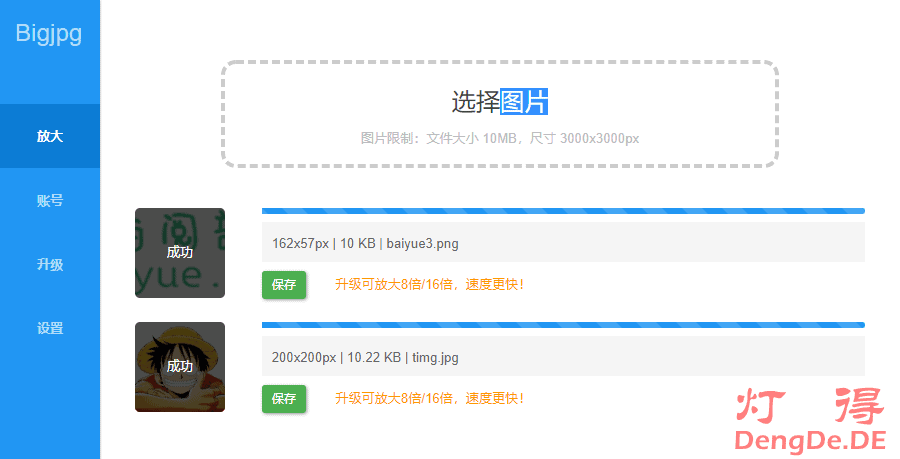 为了维持这个工具的服务器开支,我们提供收费的放大服务。付费升级账户后你可以使用独立的高性能服务器,放大图片更快、更多、更稳定。