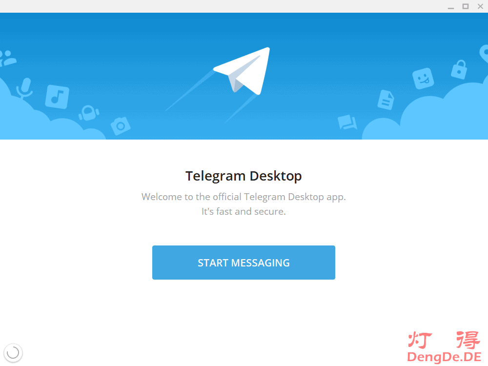 1)我们打开电脑版的Telegram应用,进入 Telegram Desktop 首页,并点击 “START MESSAGING” 按钮。如下图所示: