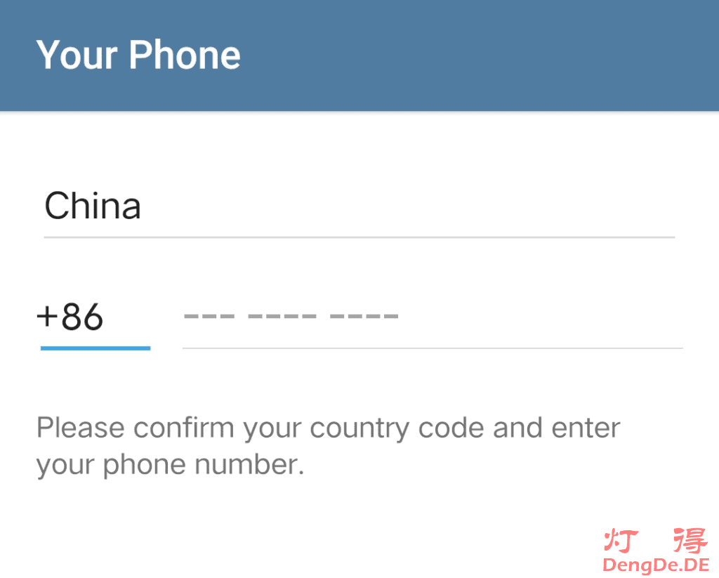 2)在“Your Phone”界面,我们先选择注册TG号使用的手机号所在的国家或地区,然后输入你的手机号码。