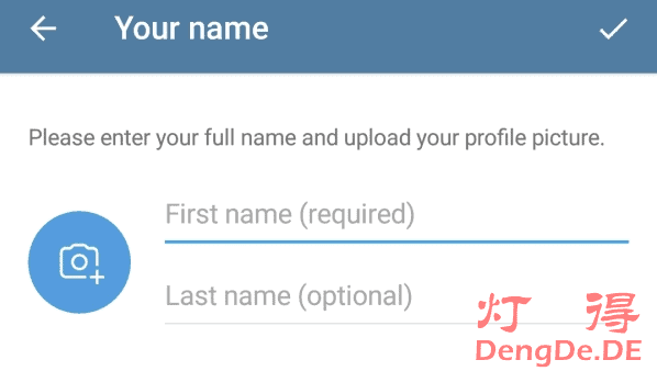 4)在“Yout Name”界面设置你的头像和昵称,完成后点击右上角的对号按钮。
