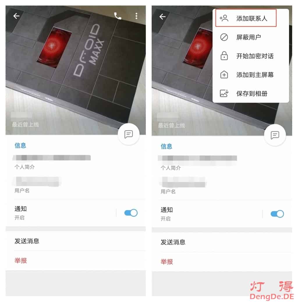 在 Telegram App 5.8 版和 Telegram Desktop 1.7.9 版本以前,你必须有对方的手机号才可以添加好友。但现在你使用新版Telegram,可以直接在对方资料页面里添加联系人。比如,我们在Telegram群组里面,点击任何一个用户的头像,在弹出的用户信息页面,点击右上角三个点,在弹出的菜单中,就可以选择“添加联系人(Add As Contact)”,比旧版方便多了。