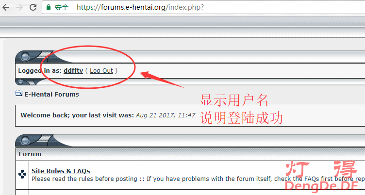 (2)当我们登录E站论坛成功后,会看到登录成功页面。如下图所示: