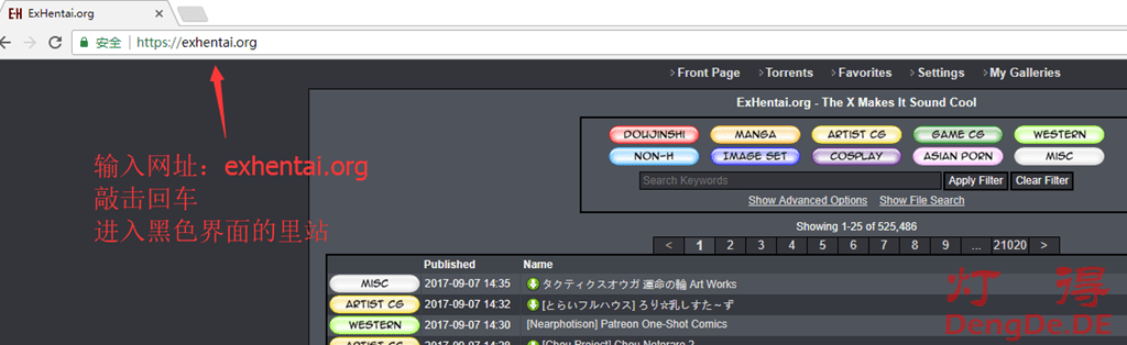 (3)请打开E站里站网址,这个时候就登陆成功了,此时可以直接退出加速器梯子软件,直接看本子,只要不清除cookie,以后可以直接打开E站里站网址看。