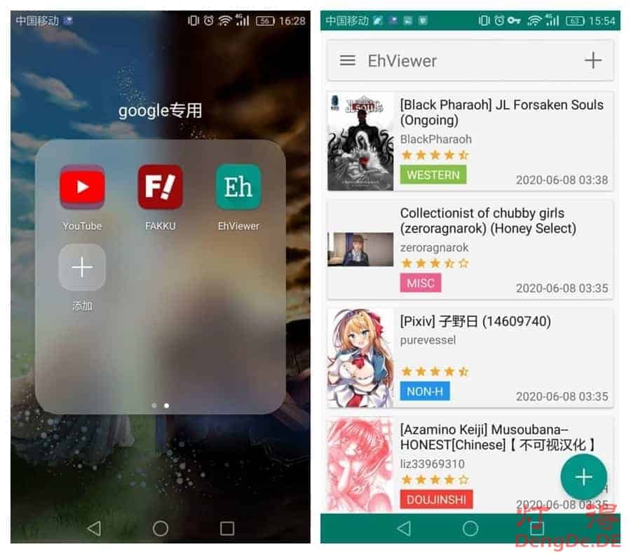 我们从Github下载安装好EhViewer,打开后就可以自由浏览E站表站所有内容了(Eh标识)。如下图所示: