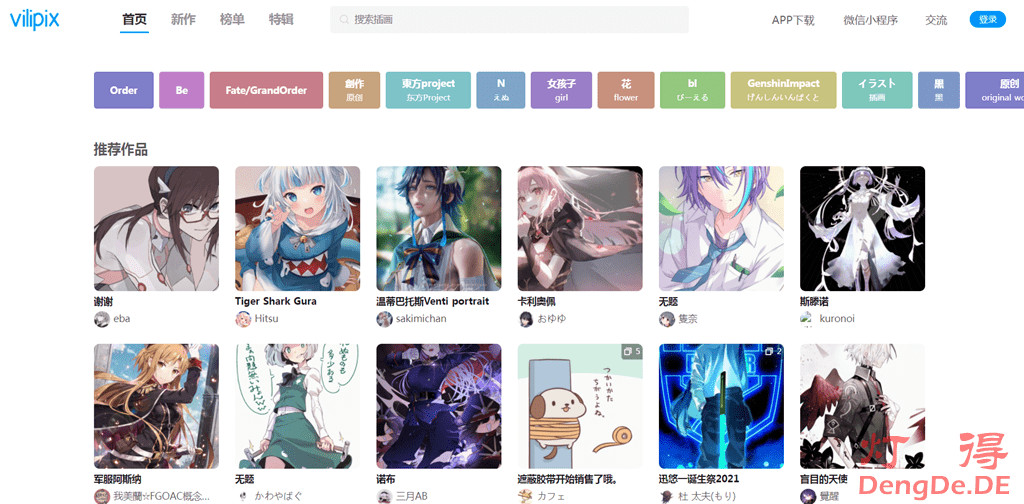 插画世界网站以蓝色为主色调,页面布局和pixiv官网保持一致,非常清新、干净,国内少有的体验跟pixiv站一致的网站,同时提供了pixiv站画师的最新、日榜、周榜、月榜、特辑的插画浏览,并且可以通过移动端、微信小程序进行访问~