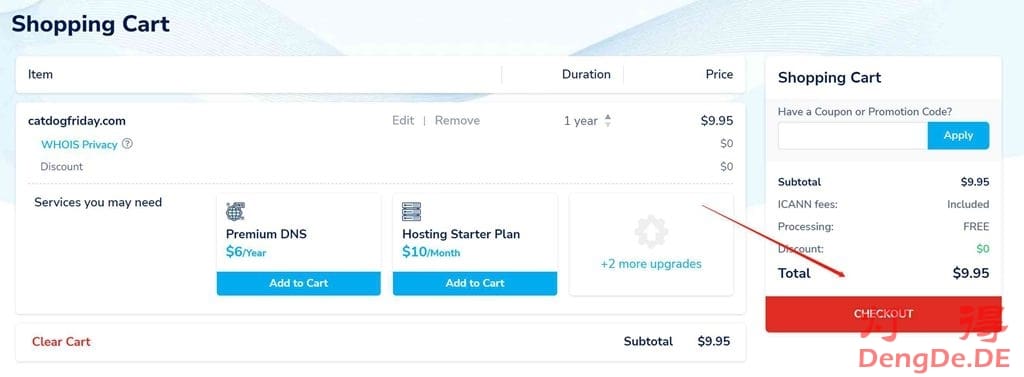 注意事项:NameSilo会推销他的主机,但我们只需要注册域名即可。