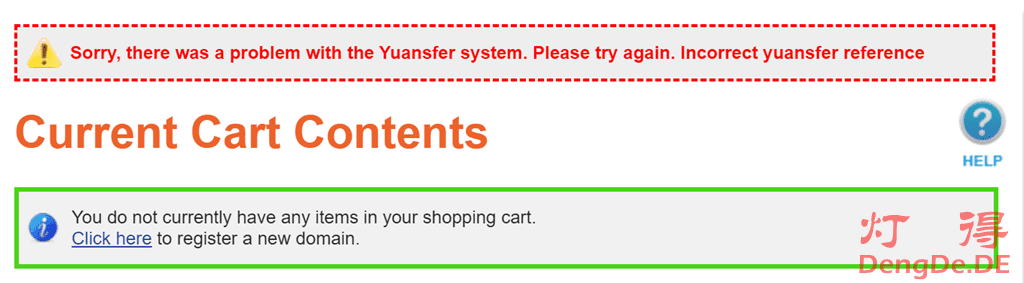 接下来进入付款流程,扫码支付即可。如果您在支付完成后,遇到以下错误提示,请不要担心,NameSilo会很快处理好的。