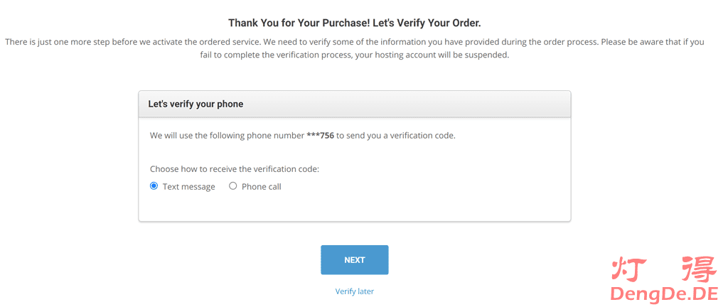 注意事项:下单以后,SiteGround会发短信或者打电话验证你输入的电话号码,请确认你输入的电话号码真实有效。当然,你可以使用Google Voice 虚拟电话号码注册。