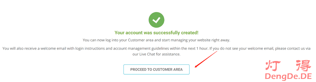 点击“PROCEED TO CUSTOMER AREA”进入主机控制面板。
