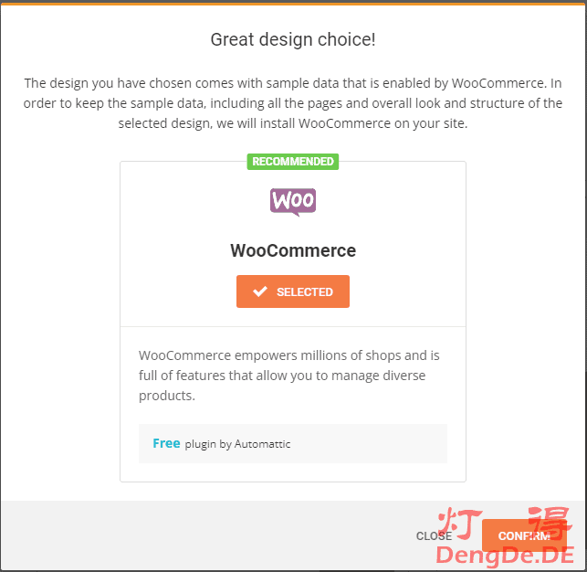 选择这个模板,会自动激活WooCommerce这个插件,如图: