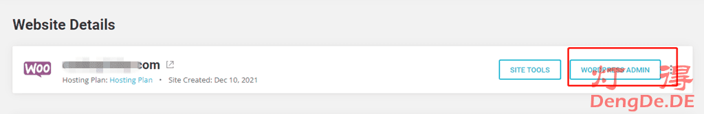 一般2分钟左右就可以完全安装。安装好以后,通过点击网页最上方的”WEBSITES“可以看到我们刚刚设置好的网站,点击”WORDPRESS ADMIN“开始设置我们的WordPress,通过”SITE TOOLS“可以设置域名邮箱、SSL、CDN加速。如图: