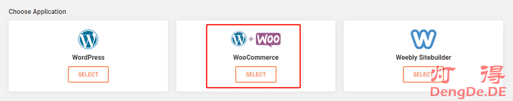 然后选择“WordPress+WooCommerce”。如下图所示: