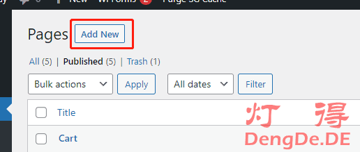 然后,为了方便客户了解我们和联系我们,我们还需要添加“About Us/Contact Us”页面,点击”Add New”即可。如下图所示: