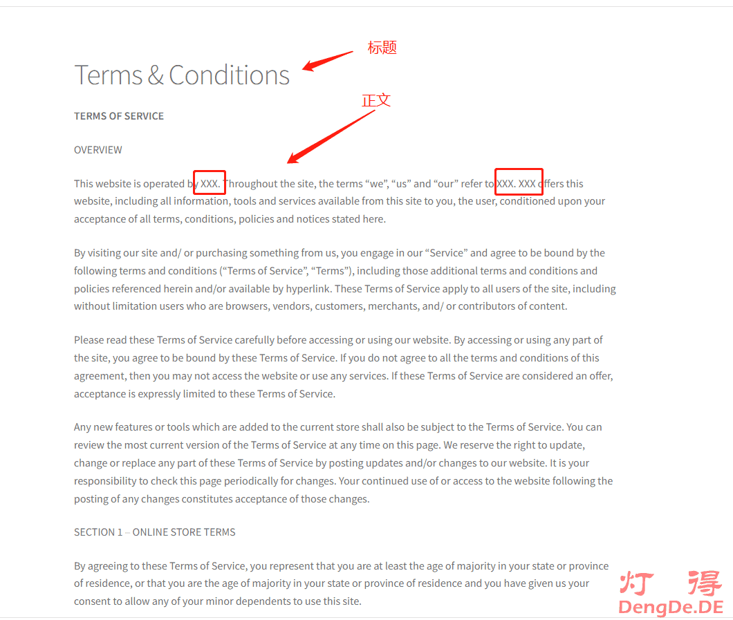 3、添加“Terms & Conditions”页面