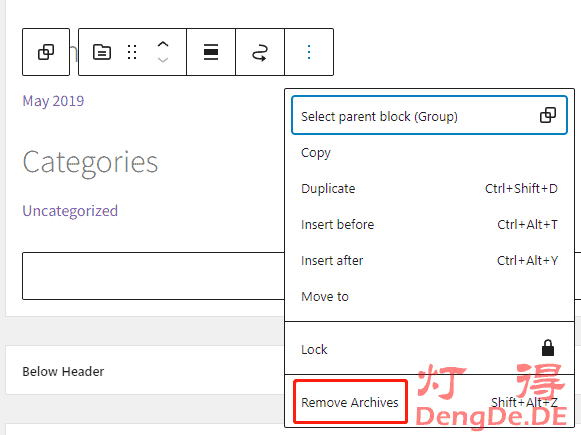 我们需要把这些一项项逐个移除,比如“Archives”,先用鼠标选中,然后点最右边的三个点。如下图所示: