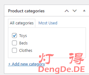 至于 Inventory、Shipping 等其他属性,可以等以后运营的时候再设置,请不要忘记在右边选分类。如下图所示: