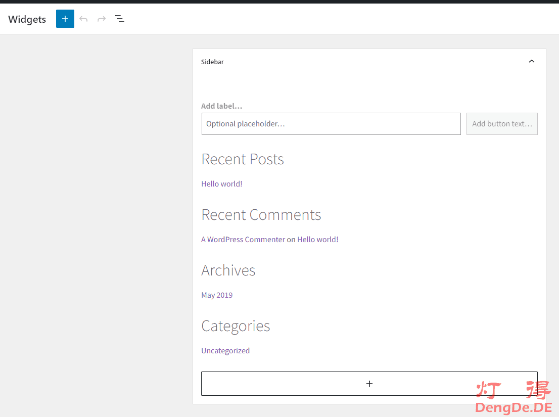 这时候,我们可以在WordPress网站管理后台的“Widgets”中删除这些不相关的内容。具体操作路径:Dashboard—>Appearance—>Widgets—>Sidebar,如下图所示: