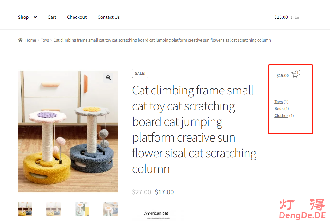 当我们将不相关或不想保留的区块全部移除后,点右上角的”Update“按钮,保存一下,此时再打开产品页面就显得清爽多了。现在,我们可以添加一些有用的东西到侧边栏。例如,“Mini Cart”和“Product Categories List”,添加好以后是这样的: