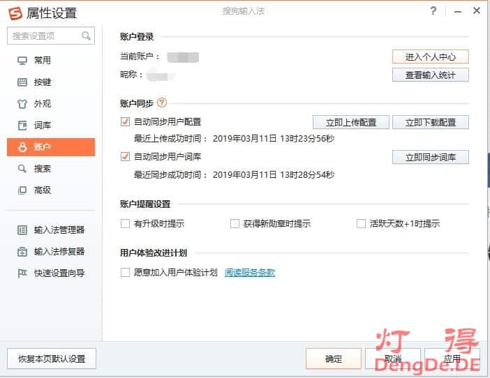 坑二:用户数据与搜狗服务器数据进行同步;你应该碰到过当你使用一台新电脑的时候,下载Sogou输入法,你需要登陆你之前使用的账号,之后再进行同步!OK !你在之前电脑上使用的用户习惯、词频等都将同步到你这台新电脑的输入法中。