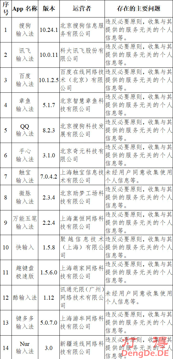 - 中国网信办通报15款输入法应用,违反必要原则,收集与其提供的服务无关的个人信息-2021年5月1日
