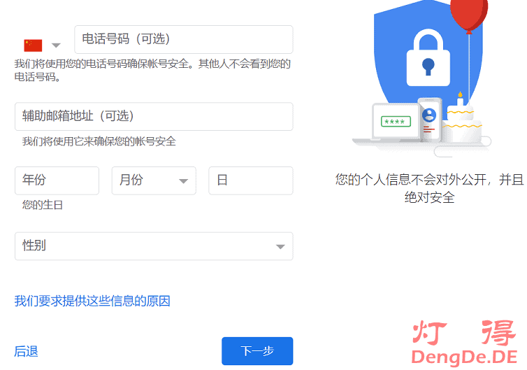 注意事项:如果你是做 Google Adwords 或是Youtube业务的人员,建议填写真实信息,其它非重要用途请随意填写。