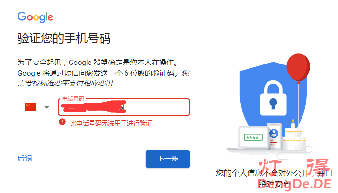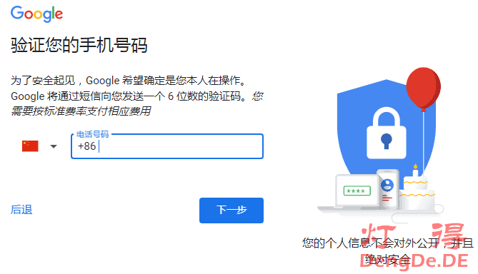 这是大多数用户注册谷歌账号时会遇到的情况,区号选择中国(+86),输入自己的电话号码,点击“下一步”继续。