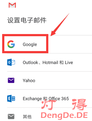 第三步:在”设置点击邮件“页面,选择Google。这里不能随便选择,你要使用Gmail,就必须选择Google。