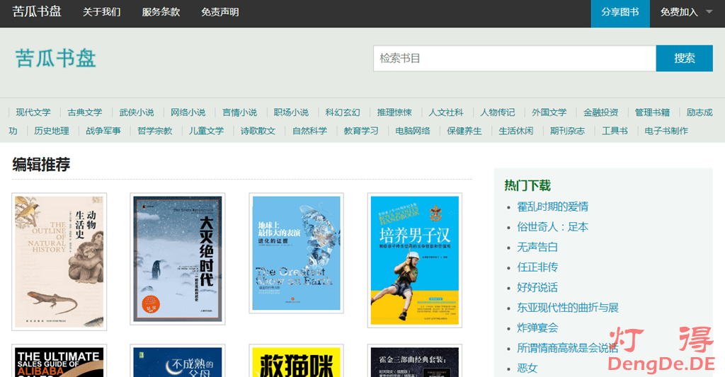 苦瓜书盘是一个电子图共享平台,所有的图书都有网友自发上传。网站会根据书籍类型进行分类整理,提供kindle支持的mobi格式以及PDF格式两种下载方式,但资源没有Z-library多。