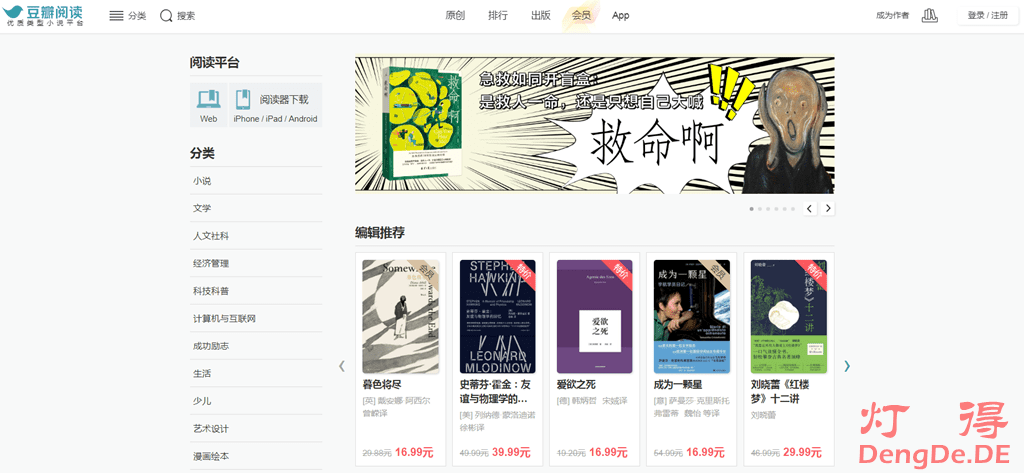 豆瓣阅读官网:https://read.douban.com/ebooks/