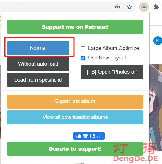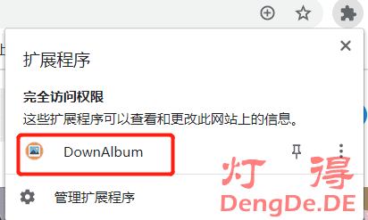 (5)在我们添加DownAlbum插件之后,我们点击 Google Chrome 浏览器右上角的拼图图标,在“管理扩展程序”里,选择“DownAlbum”。