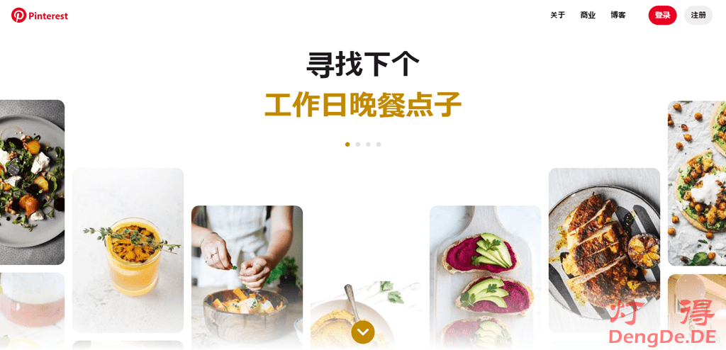 1)首先,我们打开Pinterest官网,在页面右上角点击【注册】按钮。