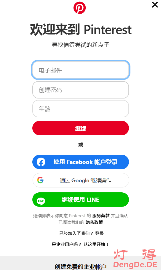 国内怎么上Pinterest?Pinterest允许使用邮箱注册或Google/Facebook/LINE账号授权直接登录。如果你想要使用邮箱注册,我建议你使用Gmail/Yahoo/Outlook等国外邮箱,像 QQ邮箱、网易邮箱等显然是不行的;如果你使用Google/Facebook/LINE账号直接登录,那么我推荐你使用Google账号登录,因为Gmail本身就是Google账号,而且也方便以后注册其他国外网络服务。