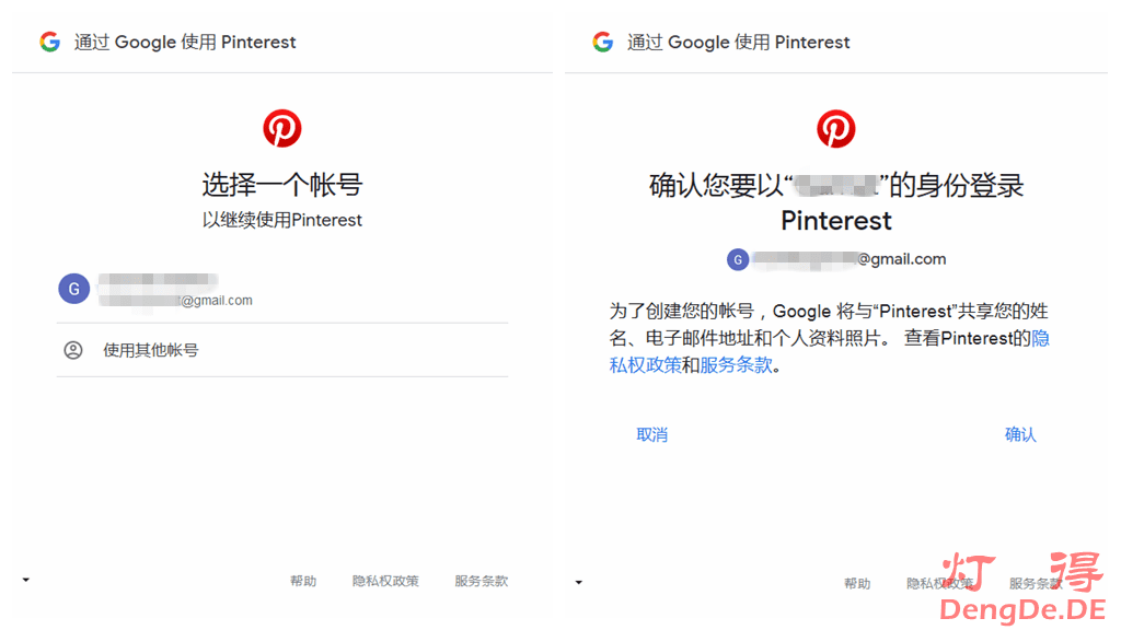 2)跳转到Pinterest注册账户界面,我这里以使用Google账号授权登录为例进行演示,点击【通过 Google 继续操作】按钮。