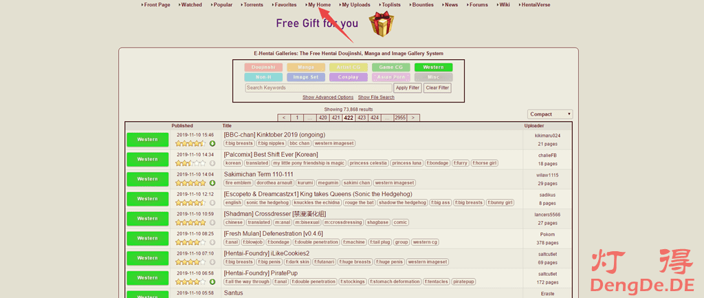 4)当我们注册完成后,请再次点击“my home”按钮返回E站主页,如果已经成功注册了E站账号,那么会出现如下图显示。