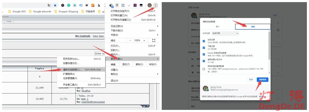 我以清除 Google Chrome 浏览器数据为例进行演示,请点击右上角的“三个点”图标,依次选择“更多工具”-“清除浏览器数据”-“高级”,勾选“Cookie 及其他网站数据”,然后点击“清除数据”即可完成。