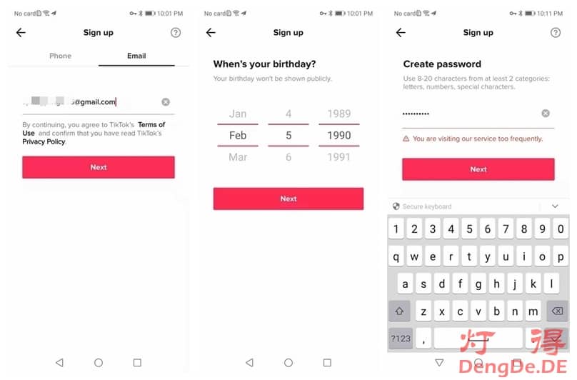 注册开通Tiktok账号可以使用手机号或Gmail邮箱,相对于使用美国手机号来说,Gmail邮箱更容易获取,实卡的国外手机号价格更贵一些(不要用便宜的虚拟号,容易被封,比如 Google Voice 等),而且Gmail邮箱的受众非常广泛。