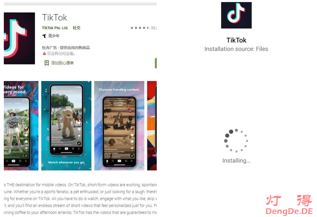 (1)安装 Google Play 谷歌应用商店,然后在商店搜索“TikTok”并下载安装。