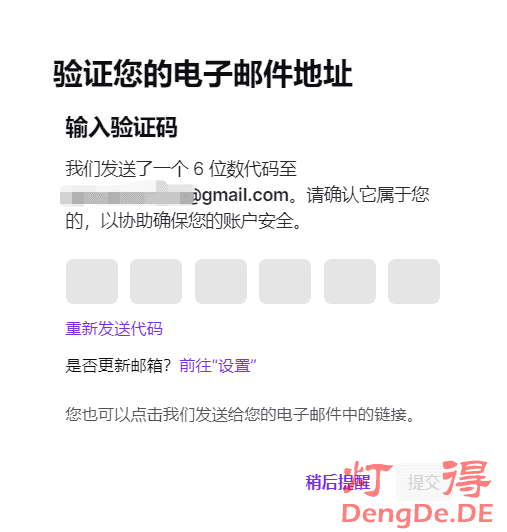 (2)把注册信息填写完整后,点击“注册”按钮,会自动跳转到“验证您的电子邮件地址”页面。如下图所示: