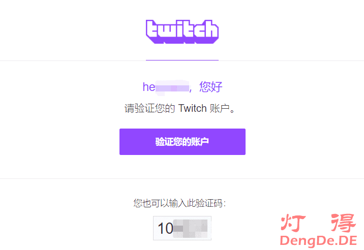 (3)登录我们注册帐号的电子邮箱,打开来自Twitch的验证邮件,复制验证码,然后去验证电子邮件地址。