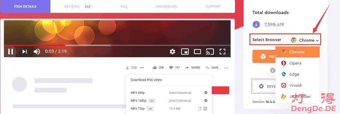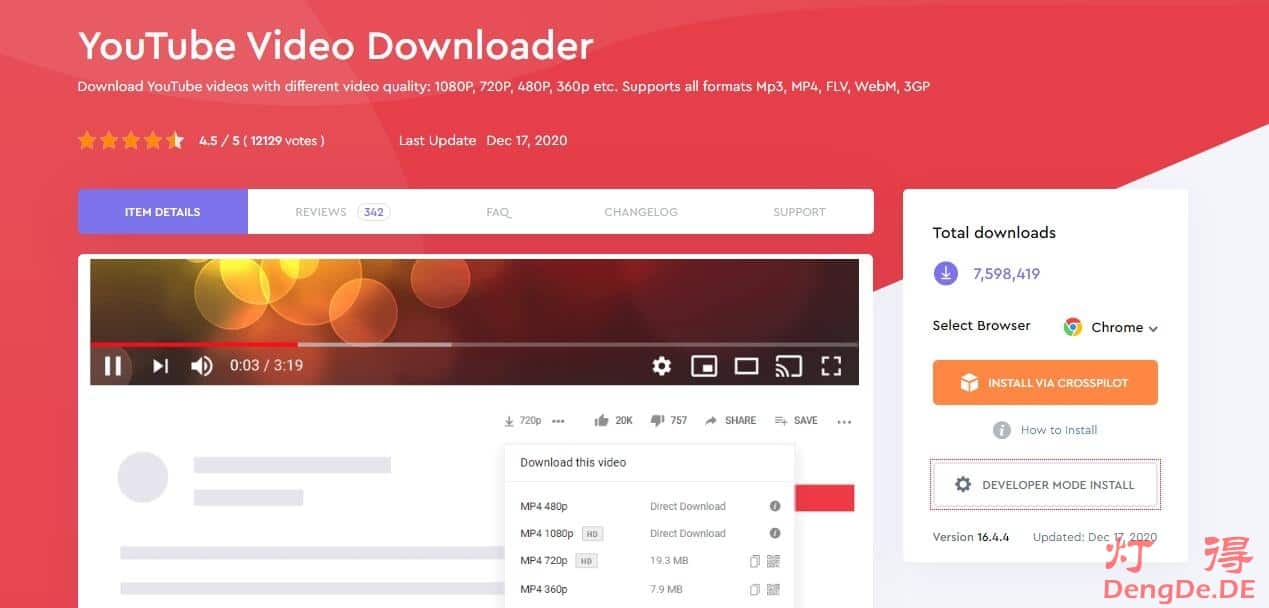 下载YouTube视频的方式又很多种,通过浏览器插件来下载Youtube视频是最方便的了。其中,“YouTube Video Downloader”就是一款非常知名的YouTube视频下载神器,该插件可在 Google Chrome、Opera、UC、Edge、Vivaldi 等 Chromium 内核的浏览器上使用。