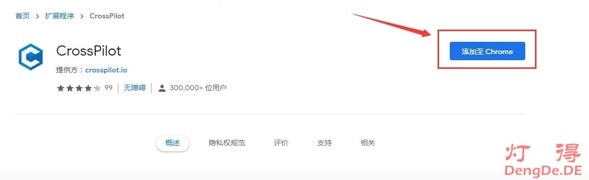 (3)在新打开的应用商店的扩展程序页面上点击“添加至 Chrome”按钮。如下图所示: