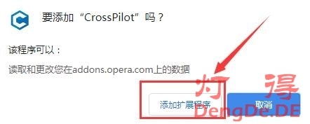 (4)然后在弹出的【要添加“CrossPilot”吗?】窗口上,点击“添加扩展程序”按钮。