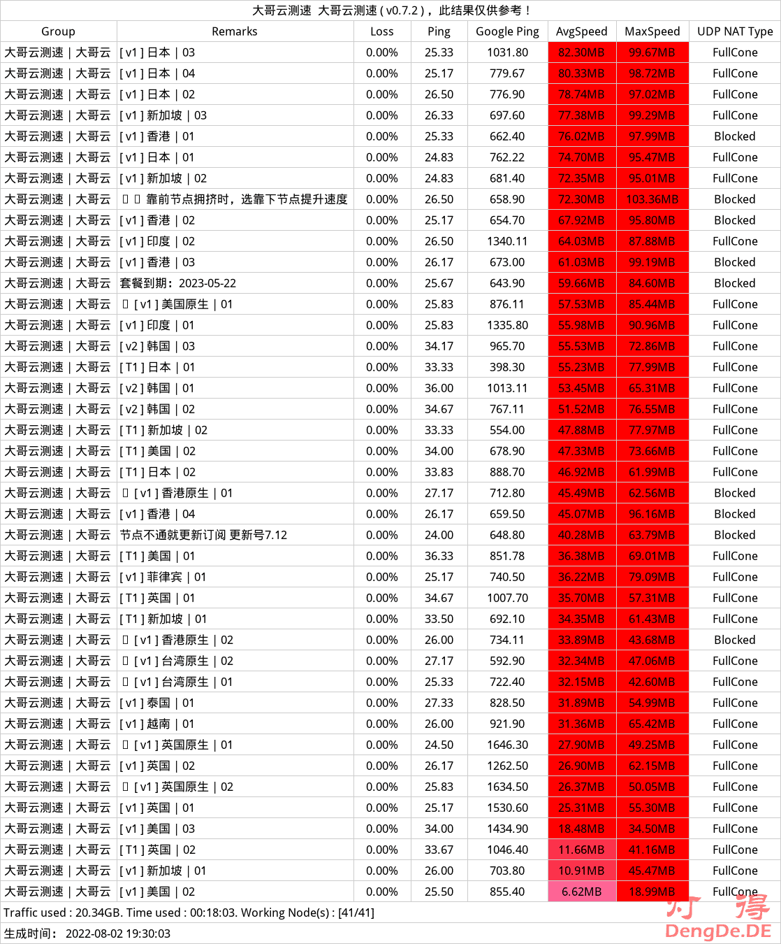 1)大哥云机场线路节点Speedtest测速