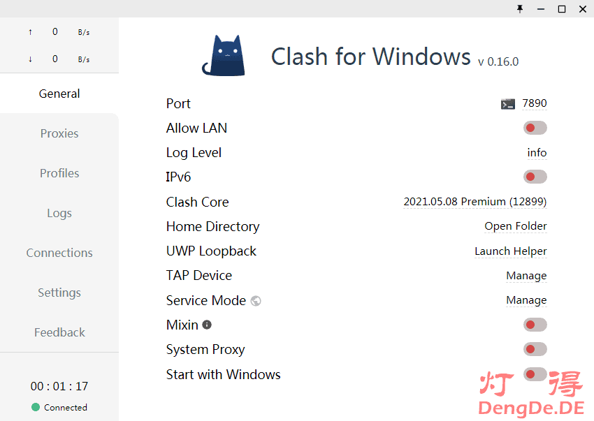 - Home Directory:Clash 配置文件目录(不建议修改此目录下文件内容)
