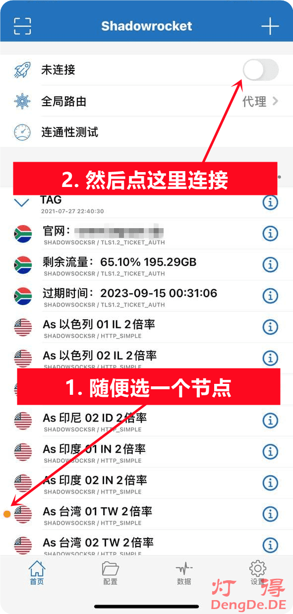 【温馨提醒】如果您不具备自建代理服务器的技术能力或不准备自建小火箭节点,且还没有购买Shadowrocket节点的话,灯得建议您参考 优质高速稳定SSR/SS/Clash/Trojan/Xray/V2Ray机场推荐 | IPLC/IEPL专线付费机场排名,选择一家最适合你的优质机场梯子,上外网畅游世界,看国外流媒体视频。