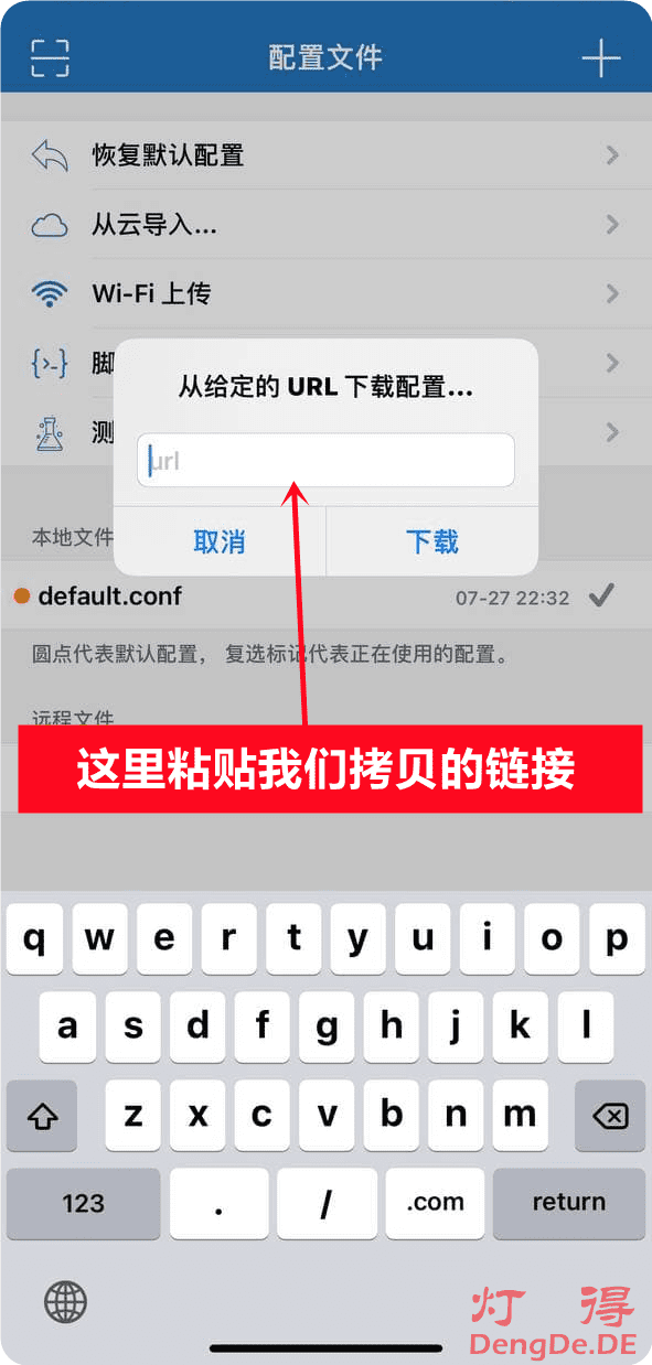 3)在弹出的“从给定的 URL 下载配置…”窗口中,粘贴复制好的配置链接,并点击“下载”按钮。