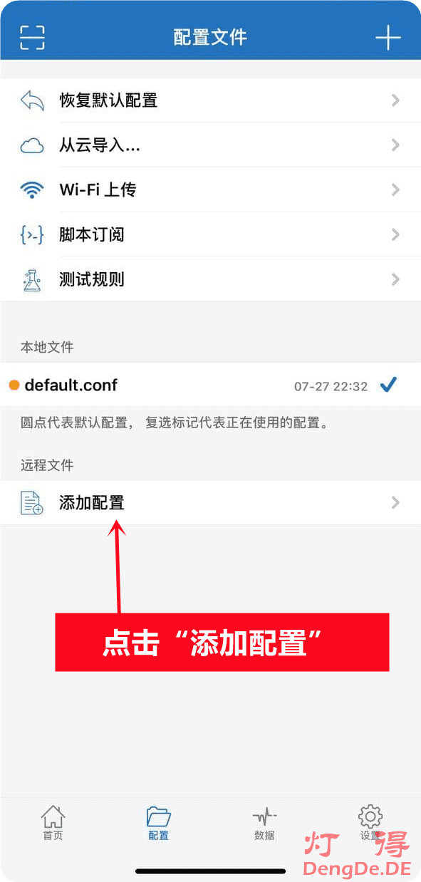 2)在【配置文件】界面,我们点击下面的【添加配置】项。