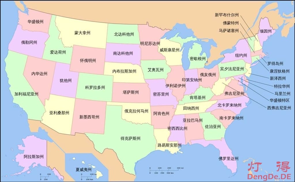美国是一个联邦共和国,有50个州和一个联邦特区(哥伦比亚特区),除去夏威夷和阿拉斯加两个州,其余的48个州和哥伦比亚特区被称为美国本土或美国大陆。